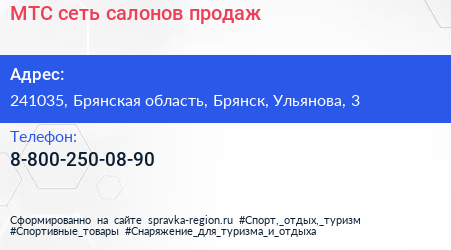 МТС, сеть салонов продаж по адресу 241035, Брянская область, Брянск, Ульянова, 3 в дальнейшем Организация, размещена в следующих категориях: