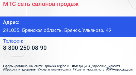 МТС, сеть салонов продаж по адресу 241035, Брянская область, Брянск, Ульянова, 49 в дальнейшем Организация, размещена в следующих категориях: