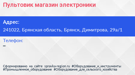 Пультовик, магазин электроники по адресу 241022, Брянская область, Брянск, Димитрова, 29а/1 в дальнейшем Организация, размещена в следующих категориях: