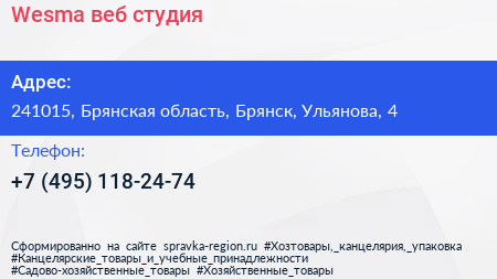 Wesma, веб-студия по адресу 241015, Брянская область, Брянск, Ульянова, 4 в дальнейшем Организация, размещена в следующих категориях: