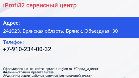 iProfi32, сервисный центр по адресу 241023, Брянская область, Брянск, Объездная, 30 в дальнейшем Организация, размещена в следующих категориях: