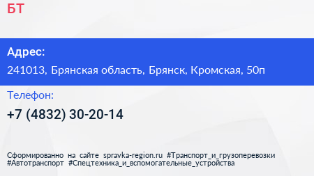 БТ по адресу 241013, Брянская область, Брянск, Кромская, 50п в дальнейшем Организация, размещена в следующих категориях: