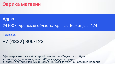 Эврика, магазин по адресу 241007, Брянская область, Брянск, Бежицкая, 1/4 в дальнейшем Организация, размещена в следующих категориях: