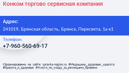 Конком, торгово-сервисная компания по адресу 241019, Брянская область, Брянск, Пересвета, 1а к1 в дальнейшем Организация, размещена в следующих категориях: