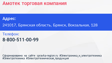 Амотек, торговая компания по адресу 241017, Брянская область, Брянск, Вокзальная, 128 в дальнейшем Организация, размещена в следующих категориях: