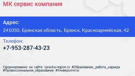 МК-сервис, компания по адресу 241050, Брянская область, Брянск, Красноармейская, 42 в дальнейшем Организация, размещена в следующих категориях: