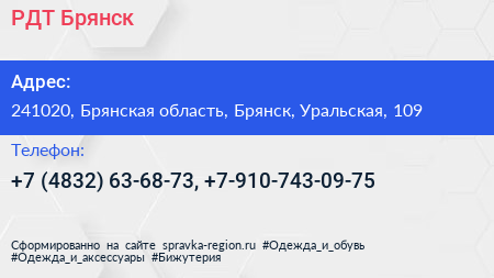 РДТ-Брянск по адресу 241020, Брянская область, Брянск, Уральская, 109 в дальнейшем Организация, размещена в следующих категориях: