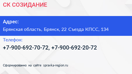 СК СОЗИДАНИЕ по адресу Брянская область, Брянск, 22 Съезда КПСС, 134 в дальнейшем Организация, размещена в следующих категориях:
