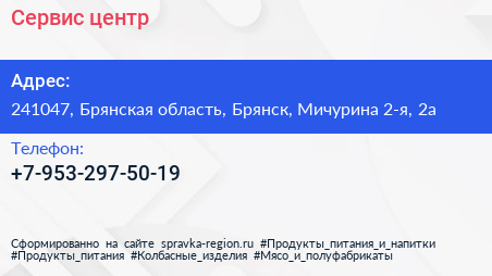Сервис-центр по адресу 241047, Брянская область, Брянск, Мичурина 2-я, 2а в дальнейшем Организация, размещена в следующих категориях: