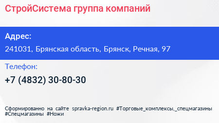 СтройСистема, группа компаний по адресу 241031, Брянская область, Брянск, Речная, 97 в дальнейшем Организация, размещена в следующих категориях: