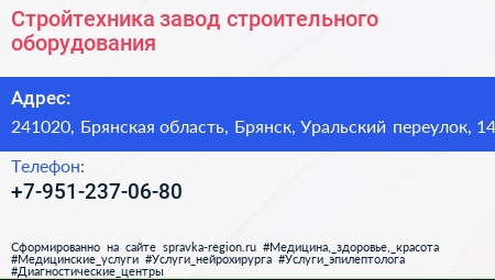 Стройтехника, завод строительного оборудования по адресу 241020, Брянская область, Брянск, Уральский переулок, 14 в дальнейшем Организация, размещена в следующих категориях: