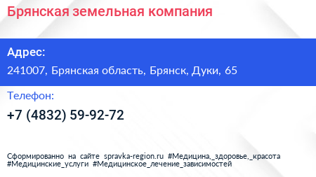 Брянская земельная компания по адресу 241007, Брянская область, Брянск, Дуки, 65 в дальнейшем Организация, размещена в следующих категориях: