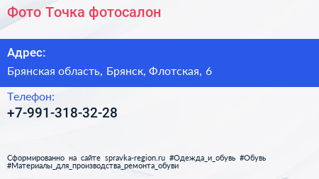 Фото Точка, фотосалон по адресу Брянская область, Брянск, Флотская, 6 в дальнейшем Организация, размещена в следующих категориях: