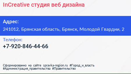 InCreative, студия веб-дизайна по адресу 241012, Брянская область, Брянск, Молодой Гвардии, 2 в дальнейшем Организация, размещена в следующих категориях: