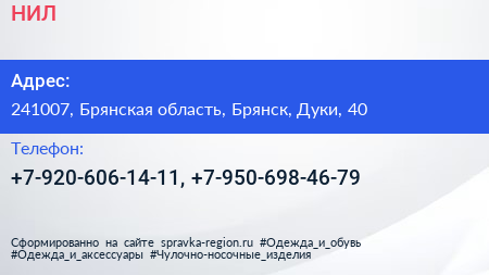 НИЛ по адресу 241007, Брянская область, Брянск, Дуки, 40 в дальнейшем Организация, размещена в следующих категориях:
