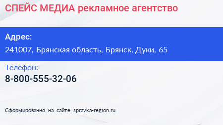 СПЕЙС МЕДИА, рекламное агентство по адресу 241007, Брянская область, Брянск, Дуки, 65 в дальнейшем Организация, размещена в следующих категориях:
