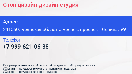 Стоп дизайн, дизайн-студия по адресу 241050, Брянская область, Брянск, проспект Ленина, 99 в дальнейшем Организация, размещена в следующих категориях: