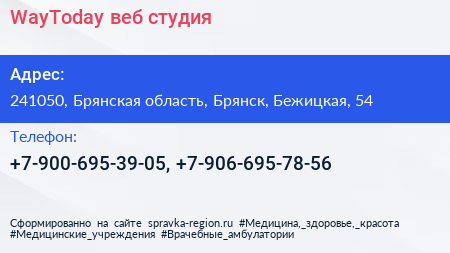 WayToday, веб-студия по адресу 241050, Брянская область, Брянск, Бежицкая, 54 в дальнейшем Организация, размещена в следующих категориях: