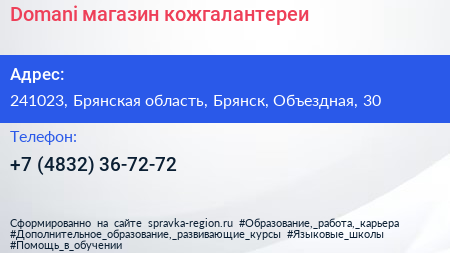 Domani, магазин кожгалантереи по адресу 241023, Брянская область, Брянск, Объездная, 30 в дальнейшем Организация, размещена в следующих категориях: