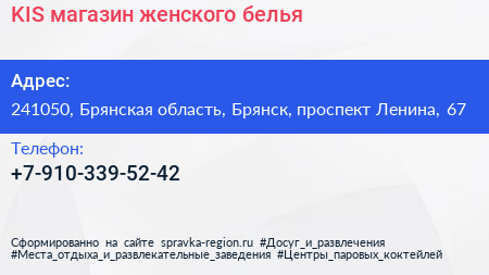 KIS, магазин женского белья по адресу 241050, Брянская область, Брянск, проспект Ленина, 67 в дальнейшем Организация, размещена в следующих категориях:
