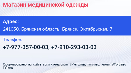 Магазин медицинской одежды по адресу 241050, Брянская область, Брянск, Октябрьская, 7 в дальнейшем Организация, размещена в следующих категориях: