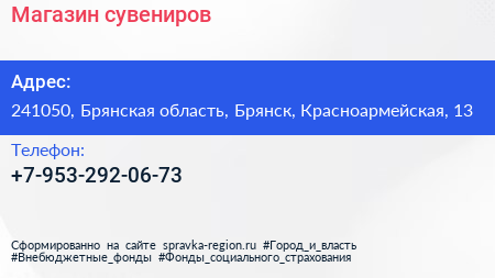 Магазин сувениров по адресу 241050, Брянская область, Брянск, Красноармейская, 13 в дальнейшем Организация, размещена в следующих категориях: