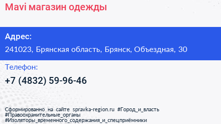 Mavi, магазин одежды по адресу 241023, Брянская область, Брянск, Объездная, 30 в дальнейшем Организация, размещена в следующих категориях:
