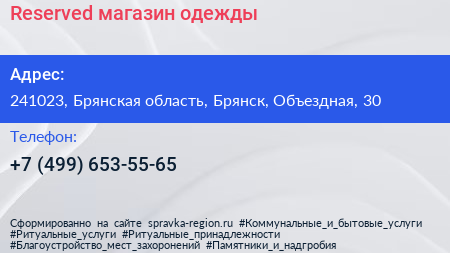 Reserved, магазин одежды по адресу 241023, Брянская область, Брянск, Объездная, 30 в дальнейшем Организация, размещена в следующих категориях: