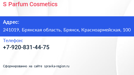 S Parfum & Cosmetics по адресу 241019, Брянская область, Брянск, Красноармейская, 100 в дальнейшем Организация, размещена в следующих категориях: