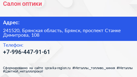 Салон оптики по адресу 241520, Брянская область, Брянск, проспект Станке Димитрова, 108 в дальнейшем Организация, размещена в следующих категориях: