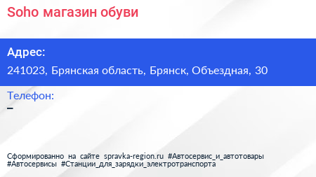 Soho, магазин обуви по адресу 241023, Брянская область, Брянск, Объездная, 30 в дальнейшем Организация, размещена в следующих категориях: