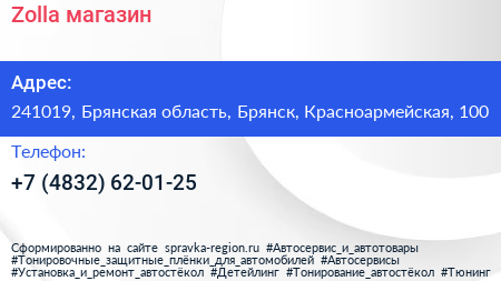 Zolla, магазин по адресу 241019, Брянская область, Брянск, Красноармейская, 100 в дальнейшем Организация, размещена в следующих категориях: