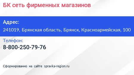 БК, сеть фирменных магазинов по адресу 241019, Брянская область, Брянск, Красноармейская, 100 в дальнейшем Организация, размещена в следующих категориях: