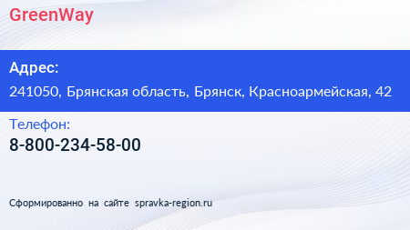 GreenWay по адресу 241050, Брянская область, Брянск, Красноармейская, 42 в дальнейшем Организация, размещена в следующих категориях: