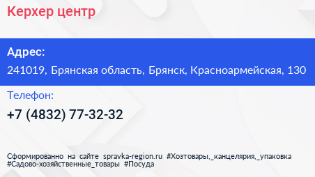 Керхер центр по адресу 241019, Брянская область, Брянск, Красноармейская, 130 в дальнейшем Организация, размещена в следующих категориях: