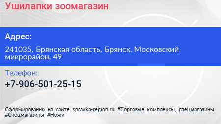 Ушилапки, зоомагазин по адресу 241035, Брянская область, Брянск, Московский микрорайон, 49 в дальнейшем Организация, размещена в следующих категориях: