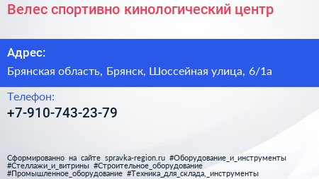 Велес, спортивно-кинологический центр по адресу Брянская область, Брянск, Шоссейная улица, 6/1а в дальнейшем Организация, размещена в следующих категориях: