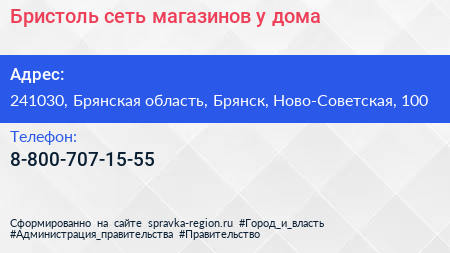 Бристоль, сеть магазинов у дома по адресу 241030, Брянская область, Брянск, Ново-Советская, 100 в дальнейшем Организация, размещена в следующих категориях: