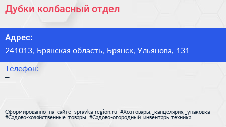 Дубки, колбасный отдел по адресу 241013, Брянская область, Брянск, Ульянова, 131 в дальнейшем Организация, размещена в следующих категориях: