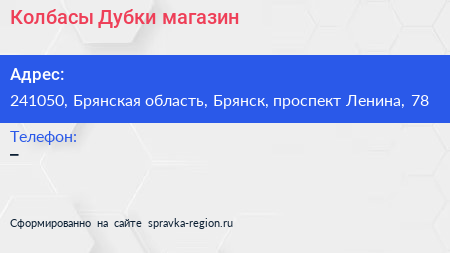 Колбасы Дубки, магазин по адресу 241050, Брянская область, Брянск, проспект Ленина, 78 в дальнейшем Организация, размещена в следующих категориях: