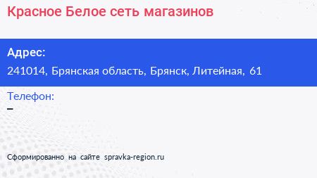 Красное & Белое, сеть магазинов по адресу 241014, Брянская область, Брянск, Литейная, 61 в дальнейшем Организация, размещена в следующих категориях:
