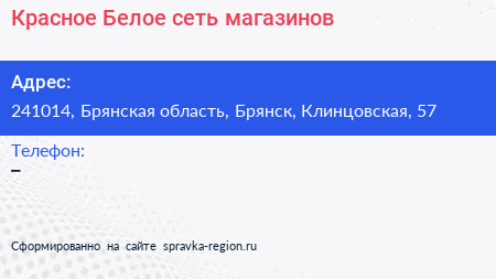 Красное & Белое, сеть магазинов по адресу 241014, Брянская область, Брянск, Клинцовская, 57 в дальнейшем Организация, размещена в следующих категориях: