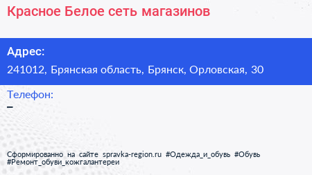 Красное & Белое, сеть магазинов по адресу 241012, Брянская область, Брянск, Орловская, 30 в дальнейшем Организация, размещена в следующих категориях:
