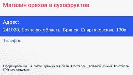 Магазин орехов и сухофруктов по адресу 241028, Брянская область, Брянск, Спартаковская, 130в в дальнейшем Организация, размещена в следующих категориях: