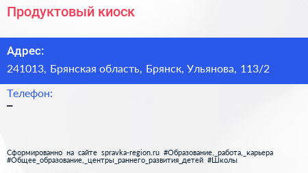 Продуктовый киоск по адресу 241013, Брянская область, Брянск, Ульянова, 113/2 в дальнейшем Организация, размещена в следующих категориях: