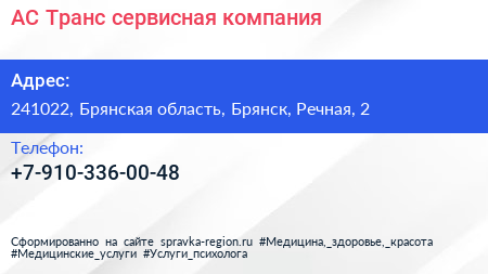 АС-Транс, сервисная компания по адресу 241022, Брянская область, Брянск, Речная, 2 в дальнейшем Организация, размещена в следующих категориях: