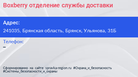 Boxberry, отделение службы доставки по адресу 241035, Брянская область, Брянск, Ульянова, 31Б в дальнейшем Организация, размещена в следующих категориях: