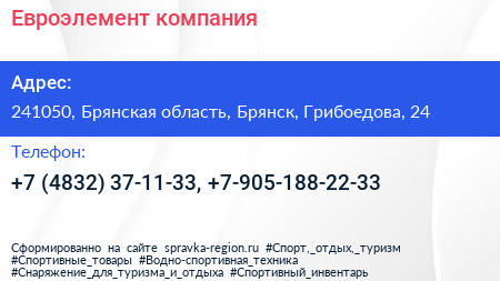 Евроэлемент, компания по адресу 241050, Брянская область, Брянск, Грибоедова, 24 в дальнейшем Организация, размещена в следующих категориях: