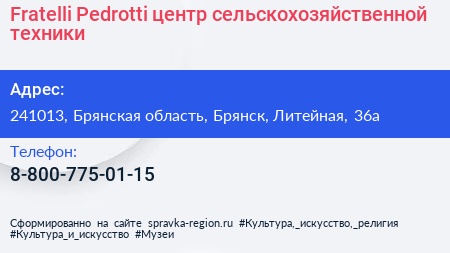 Fratelli Pedrotti, центр сельскохозяйственной техники по адресу 241013, Брянская область, Брянск, Литейная, 36а в дальнейшем Организация, размещена в следующих категориях: