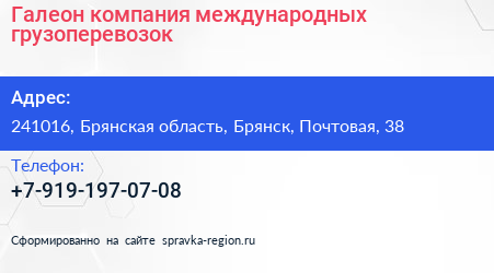 Галеон, компания международных грузоперевозок по адресу 241016, Брянская область, Брянск, Почтовая, 38 в дальнейшем Организация, размещена в следующих категориях: